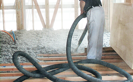 専用マシンで断熱材を吹き込み、小さなスキマにも入り込むため、壁・床・天井をすっぽり包み込みます。